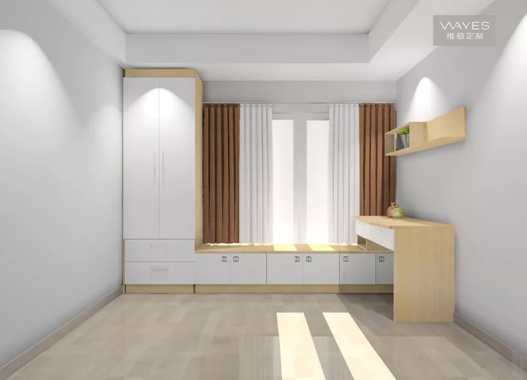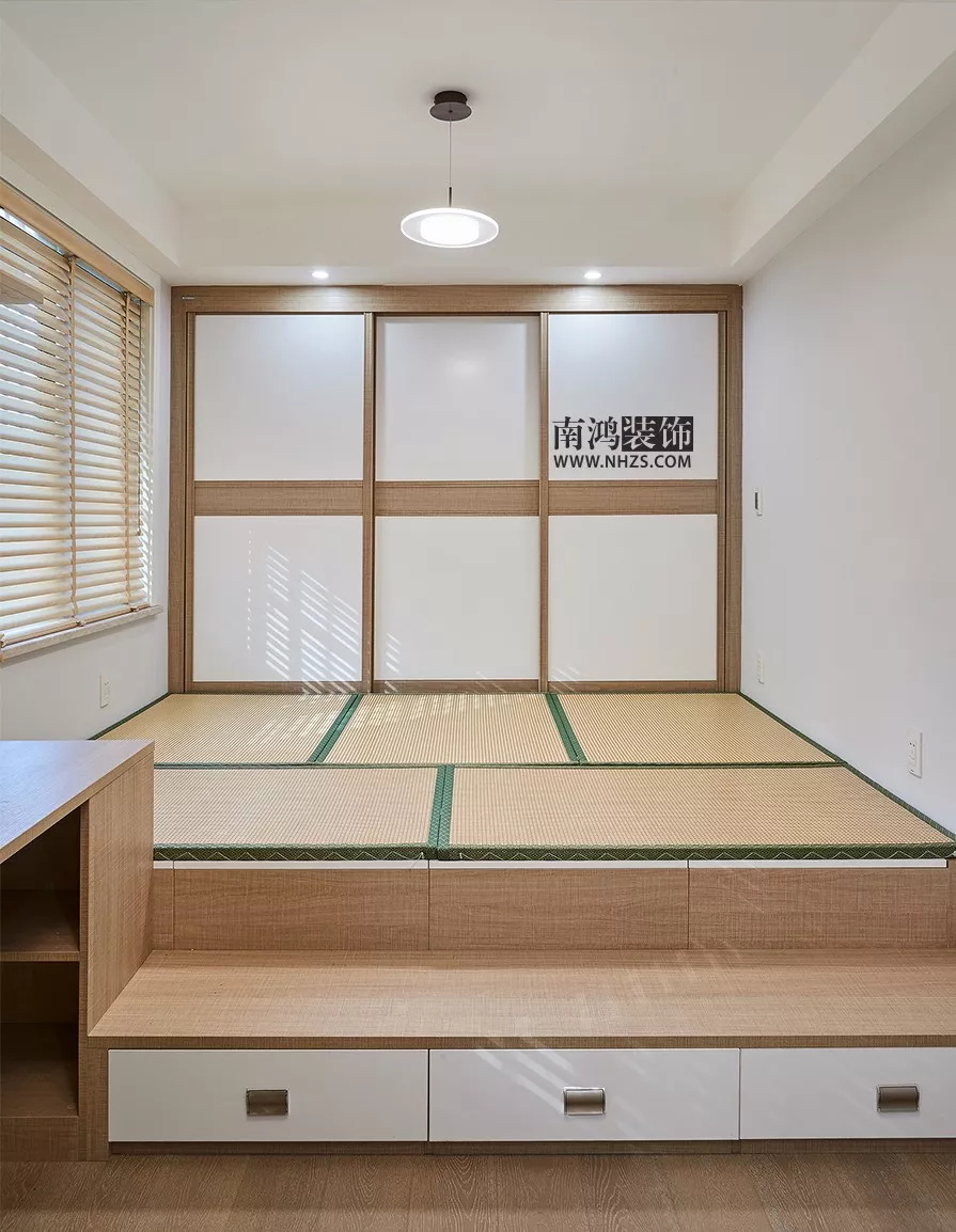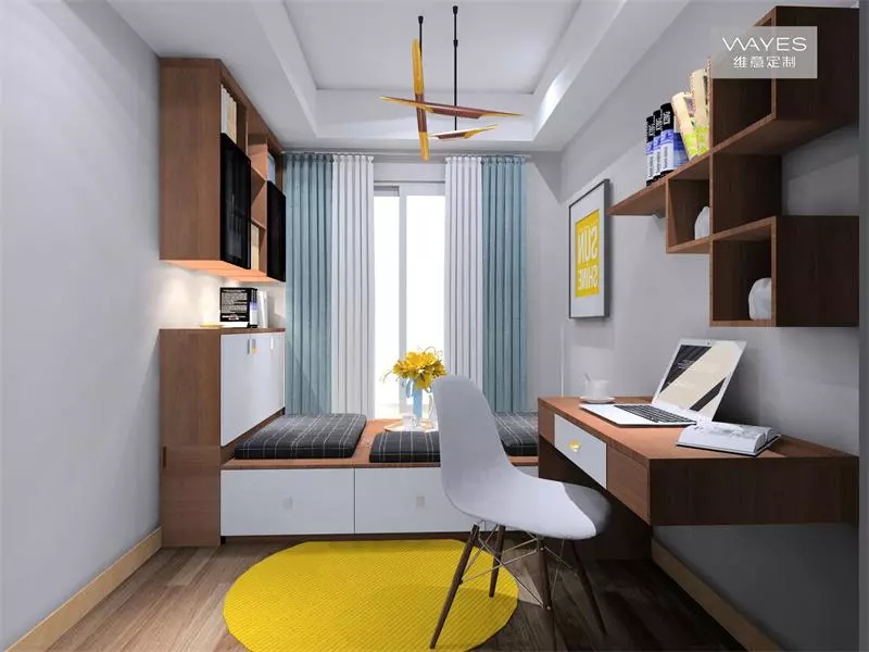 書桌旁邊還可以沿著窗戶做一排榻榻米,兼顧休憩和收納作用。
