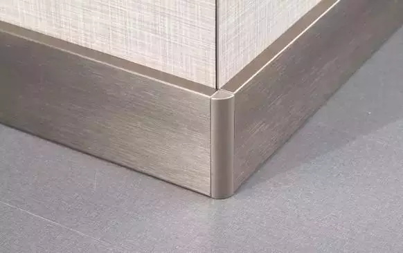 有不銹鋼和鋁合金兩種。早期以金屬光澤居多,多用于辦公室或工業(yè)風(fēng);現(xiàn)在很多鋁合金踢腳線有了更多的變化,比如木紋、拉絲等,視覺效果也柔和許多,更適合一般家庭使用。因其材質(zhì),轉(zhuǎn)角的處理也會更好。造價相比石材,也較為便宜。