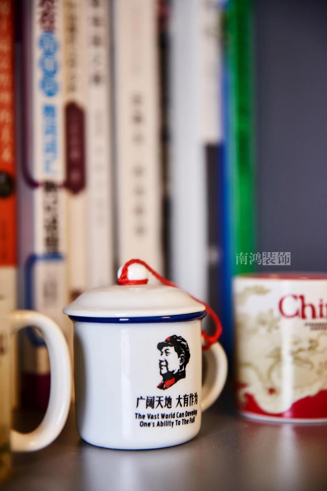 木飾面隱形門背后為次臥空間,顏色亮麗的古典瓷器綴于其中,成為點睛之筆。