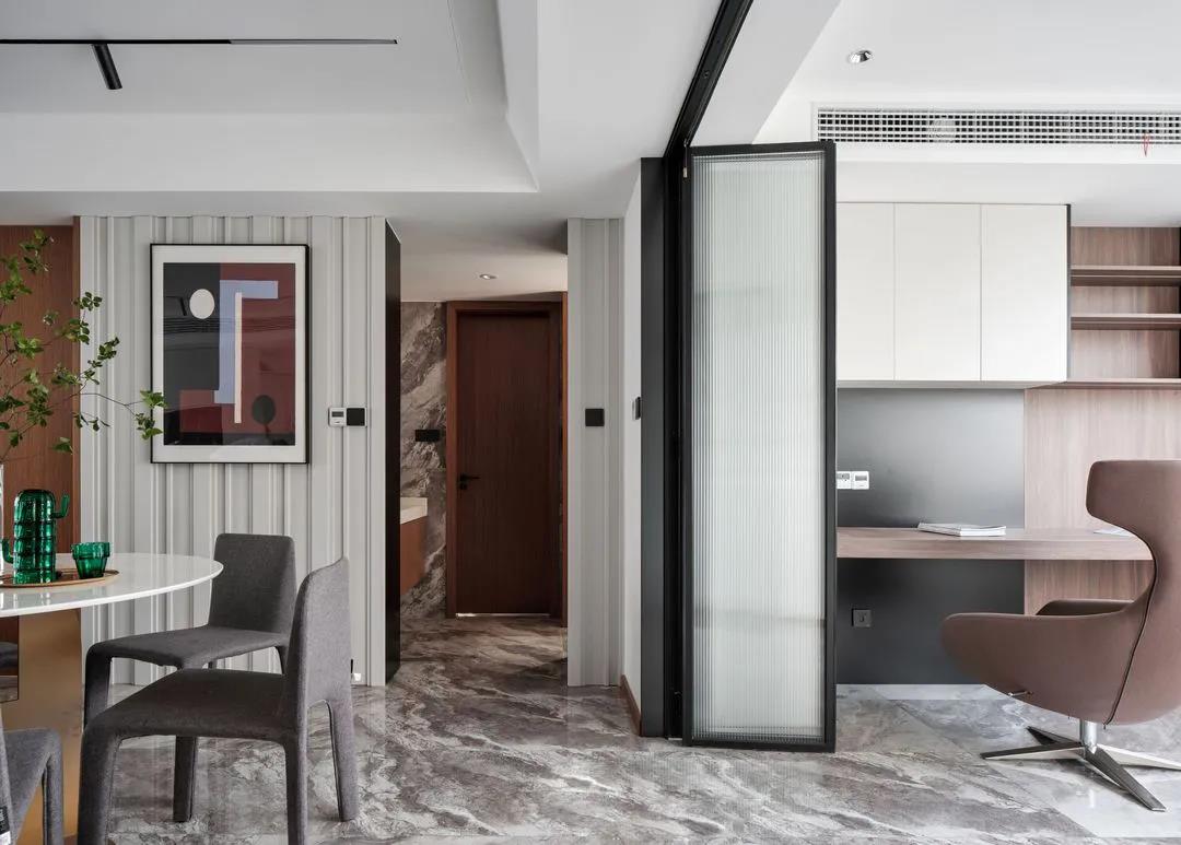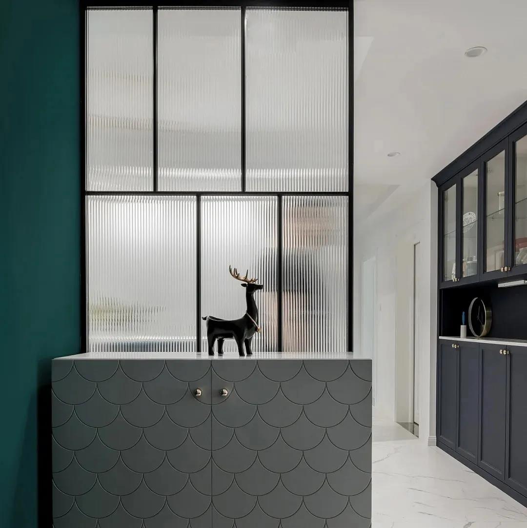 豎條紋壓花玻璃的“豎”,會(huì)比其他幾何線條更容易帶來“高”的心理暗示,且它作為隔斷或者移門時(shí),會(huì)使空間看起來敞亮,實(shí)現(xiàn)各空間的和平相處。