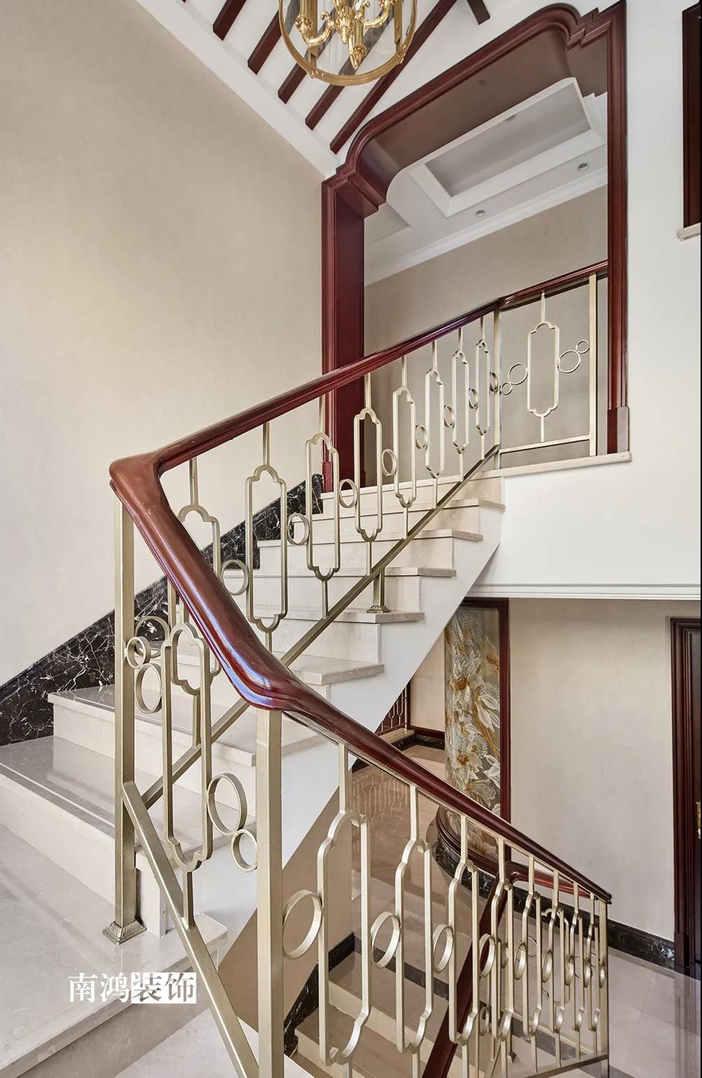 裝飾的風格是人文品位生活的體現 設計師根據業主的生活需求 將浪漫、現代與古典相融合 淬煉其中輕奢的美 讓空間內的每一個物件 都能尋到自己的歸身之所 01. 戶型分析 TYPE ANALYSIS ①原有的內庭院空間改造成了連通四層的樓梯間,南面入戶樓梯朝向改動,避免了直對大門的風水大忌。樓梯間的換位調整讓二樓、三樓的各個臥室空間都能規劃成帶有衛生間的獨立套間,大大滿足了生活中的使用需求和私密性。 ②地下室做了擴建,設計了超大衛生間,增設雙臺盆,淋浴房,桑拿房,浴缸等功能,還設計了酒窖及洗衣房,滿足生活需求的多樣性。 ③調整中廚和客衛的位置,增設西廚區和吧臺區,這樣既擴大了餐廳的就餐空間,也讓西廚和餐廳有了更好的互動性。 02. 客廳 LIVING ROOM 一樓保留并微調了原有與二樓的共享空間 保證了整個會客區的區域高度 讓空間感有了更大的呈現 客廳呈雙軸線對稱 挑高中空層彰顯華貴氣勢 空間穩重而富有層次感 自帶貴族氣質的英式家具 具有強烈和鮮明的歷史感 經典的皇家紅色分外搶眼,張揚而熱烈 整面大理石背景 搭配深色實木護墻 與橄欖綠的條紋壁紙 和金色落地窗簾交相呼應 壁爐內還暗藏空調內機 奧古曼木皮的火焰紋理 演繹著經典傳奇的浪漫色彩 在多種材質與色彩的混搭下 設計開啟生活多元的空間體驗 03. 餐廚空間 KITCHEN | DININGROOM 餐廳的風格足夠穩重 空間開敞朗闊 一桌的豐盛佳肴,推杯換盞之間 展示的是家庭歡聚的熱鬧與喜悅 超大的戶型面積 讓西廚也有了寬敞的容身之處 深色實木櫥柜 與全屋的尊貴氣質相輔相成 04. 樓梯間 STAIRCASE 樓梯間經過調整后貫連上下四層 頂部斜面以木格柵裝飾 傳遞細膩而別致的空間表達 05. 臥室 BEDROOM 通過壁紙、窗簾與床品的和諧搭配 臥室塑造了不同個性、情感的表達 讓空間變得溫暖而舒適 三樓主臥空間則更顯獨特 木飾面的梯形頂、香檳色的硬包背景 搭配經典條紋格墻紙和棗紅色窗簾 整體內斂含蓄,頗具淡淡的君子之風 06. 書房 STUDY ROOM 書房選用清新的綠色壁紙 與溫潤的木質家具搭配 豐富的自然感氣息 宛若置身鄉村田園一般 07. 衛生間 BATHROOM 衛生間整體鋪淺色的墻地磚 雕花細節使空間不失精致華美 輕奢感之上更多一份靜謐的典雅 提供獨一無二的衛浴時光 -- ·項目信息· 項目名稱:陽明谷 建筑類型:聯排別墅