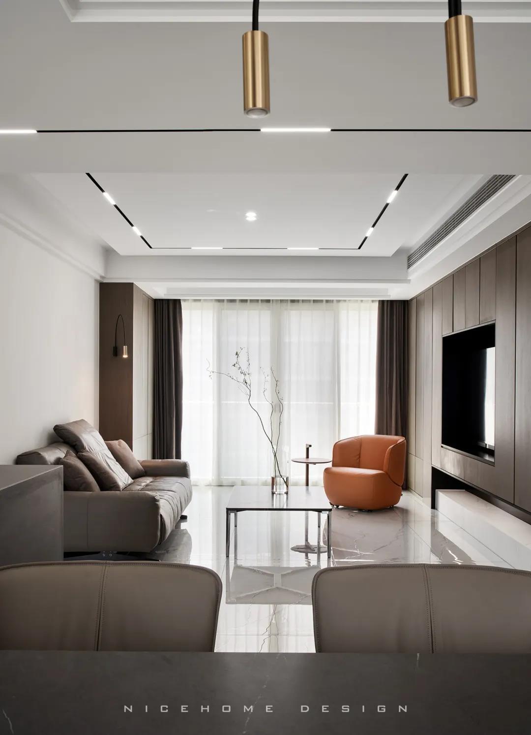 本案以現代簡約風格為主旨,潔凈的配色、高級感的家具材質,以及巧妙的空間序列規劃,再加上通透寬敞的開放式布局,令整體空間在理性的架構中傳達著現代主義的美學觀感。