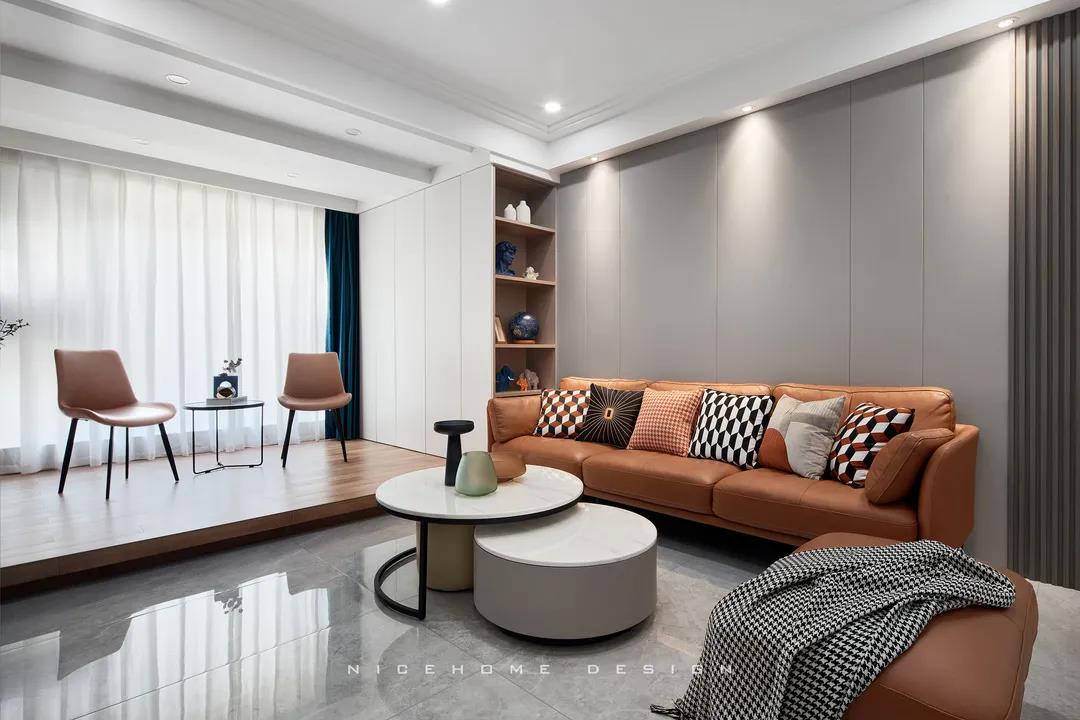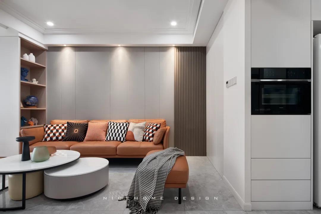 地址:金色時光 戶型:兩室兩廳 面積:89㎡ 風格:現代簡約 設計施工:浙江南鴻裝飾 ■ 關于作品 這是一套單身男業主的居所,由于是一個人居住,所以空間改動上比較靈活,原始三室戶型被改為兩室兩廳,公共區域盡可能打開。這樣一個簡約又隨性的家,一切都是恰到好處~ ■ 關于戶型 經典89方戶型,很方正,但是餐廳位置比較局促,采光不太理想。設計師犧牲了一個房間改造為餐廳,公共區域打開,并植入了比較多的鏡面元素,盡量改善室內采光。 玄 關 走廊型玄關,右側設置一組常規鞋柜,白木基底鋪墊柔和視感,底部留空放日常換的鞋物,中部可以擺一些自己喜愛的小件。 玄關相鄰廚房,為給其釋放一定空間,將冰箱、部分電器柜挪移至了外面。 玄關進客廳的轉角,順勢做了儲物柜,無把手設計十分干凈。過道口嵌一面頂天立地的鏡子,出門可在此檢視穿著,也在無形中放大空間。 客餐廳整體性很強,地面通鋪灰色大理石瓷磚,延續性紋理增加空間的縱深感。陽臺拆除隔門,包進室內打造出一塊休閑區,單層木質地臺界定出儀式感。 沙發背景墻以咖色皮質硬包組合木格柵,搭配上“熱情”的赭色沙發,軟硬材質、冷暖色調的和諧配比,構建簡單溫暖的舒適居住環境。 客餐廳以電視、電視柜與其后的定制鋁框灰玻作為隔斷,多重玻璃元素既保證了兩個空間的獨立性,也不影響自然采光入內,讓原本不算寬敞的公區域看上去視野開闊了許多。 說起獨自宅家的幸福感,自然少不得一個休閑區啦。兩把單椅搭配小巧茶幾,空閑時光看看書、聽聽音樂,享受生活其樂無窮! 白日忙碌,傍晚回到家就獎勵自己一頓豐盛的晚餐吧,把所有煩惱都吃進肚里~ 餐邊柜大臺面可以將咖啡機、面包機等小電器都安置在此,上方吊柜用來擺放杯子、茶具,長虹玻璃的美感十分賞心悅目。再搭配暖黃的燈光,用餐時分變得更加溫馨和甜蜜。 餐廳陽臺同樣包進改造為了茶室,雙層木質地臺抬高,以茶會友,快樂翻倍! 廚房布置為動線更簡短的U字形,灰白配色顯得干凈利落,純平機身的吸油煙機自帶固定隔煙屏,隔煙置物兩不誤,實用與美觀在此處完美融合。 主臥,色彩搭配與家具造型以現代簡約為基礎,低調柔和的色澤展現出舒適又有腔調感的氛圍。 次臥背景墻融入石膏線,讓空間帶上了優雅的情調,床頭背后砌筑出的窄臺面可隨手放置一些小物件,增強實用性。 對于戶型中唯一一個衛生間設計,設計師在遵從空間格局的基礎上進行了簡約化處理,實現功能性與審美性的統一。